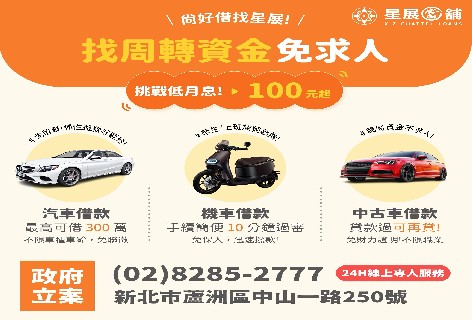 星展優質當舖是蘆洲當舖最便宜,專業辦理汽機車借款免留車,免綁約、當日撥款,還可預約外辦服務,是您急用周轉借錢的好處所,資金周轉找星展準沒錯!